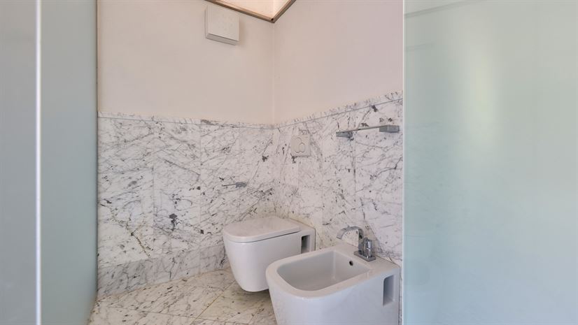 Szafa, wanna, prysznic, podwójna umywalka, WC, bidet.