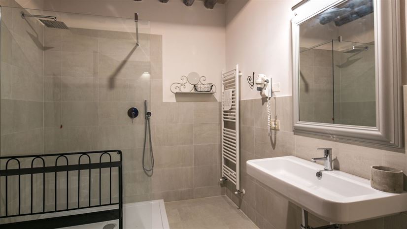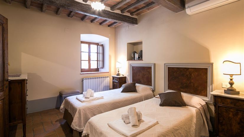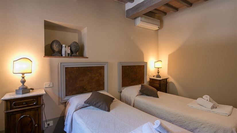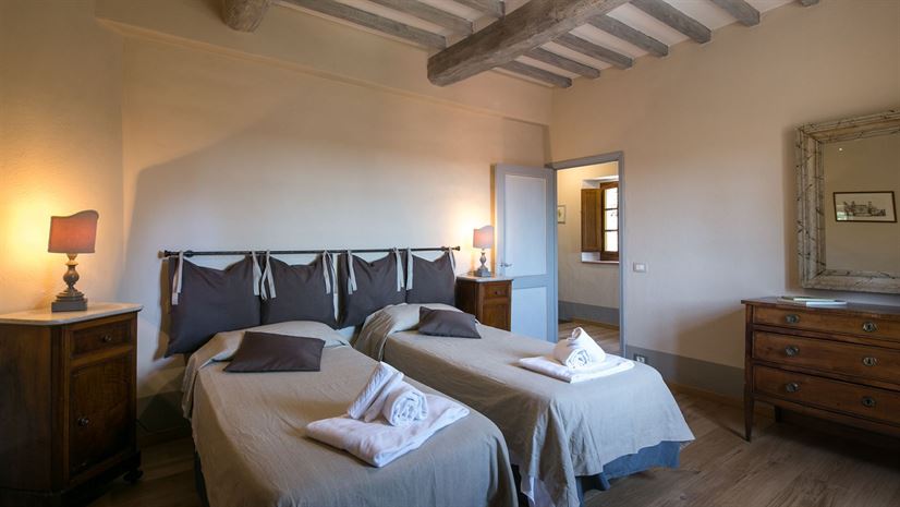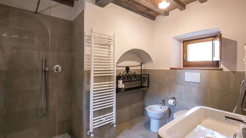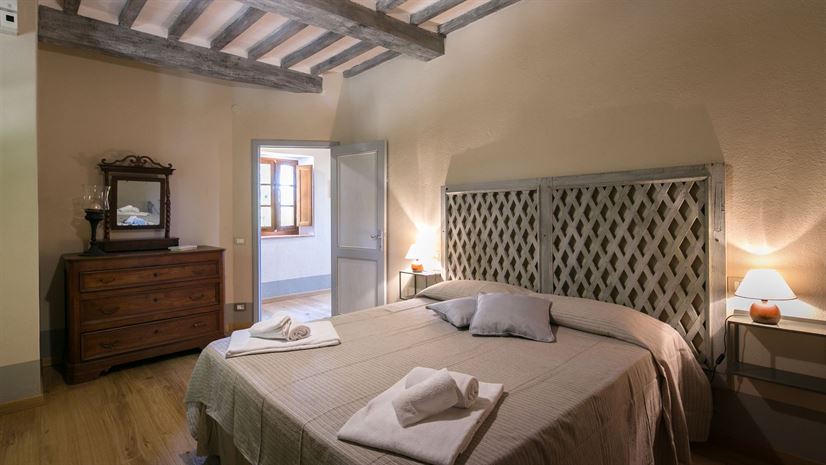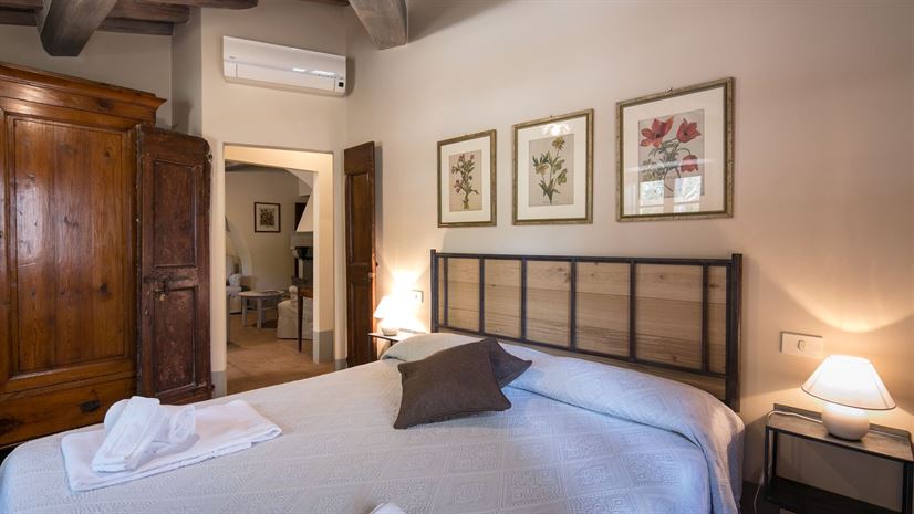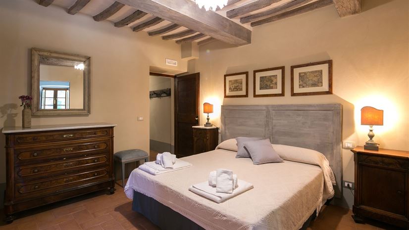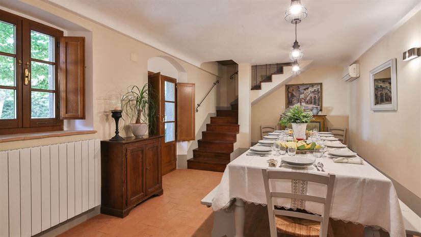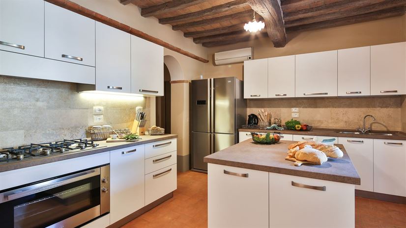 Wnętrza willi są charakterystyczne dla kamiennego toskańskiego domu, z kamiennymi łukami i okazałymi korytarzami. Wygodny i przytulny salon jest zrównoważony przez rozległą, oświetloną słońcem kuchnię z jadalnią, zapewniającą wystarczającą ilość miejsca dla każdego, aby wypocząć i wspólnie spędzić czas. Wysokie sufity pomagają utrzymać chłód w pomieszczeniach, a w szczególnie upalne dni można skorzystać z klimatyzacji.