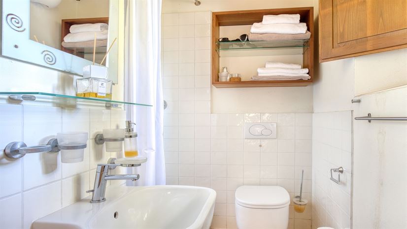 Shower, sink, WC.