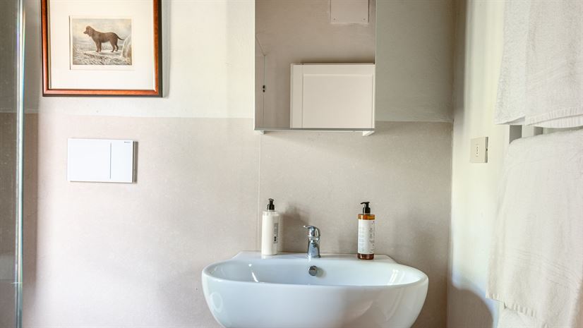 Shower, sink, WC.