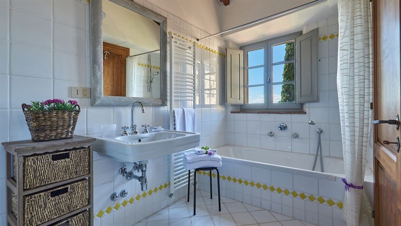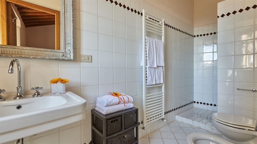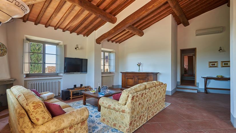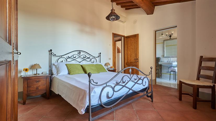 Przestronny apartament na drugim piętrze z typowo toskańskim wystrojem i nowoczesnymi udogodnieniami, wyróżniający się dużym, słonecznym tarasem z zapierającymi dech w piersiach widokami