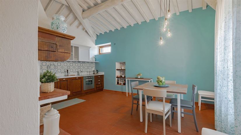 San Polino to elegancka wiejska posiadłość łącząca w sobie toskańską tradycję z nowoczesnym designem. Dbałość o oryginalne detale nadaje odrestaurowanemu domowi ciepłą, domową atmosferę. Terakota, drewniane belki stropowe, okiennice, pokoje z kopułowym sklepieniem i łukowe drzwi - wszystko to nawiązuje do dawnych czasów, a współczesne kolory i meble to ukłon w stronę nowoczesnego styl życia.