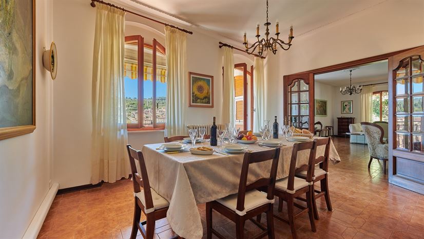 Villa Il Masseto to tradycyjny toskański dom wakacyjny, położony w spokojnej okolicy na obrzeżach Gaiole in Chianti, zaledwie trzy minuty spacerem od historycznego centrum. Dom znajduje się na łagodnym wzgórzu, jest otoczony lasem i oferuje piękny widok na dzwonnicę oraz dachy miasteczka. W tle słychać bicie dzwonów, które nadaje pobytowi wyjątkowy, toskański klimat – to idealne miejsce na relaks z rodziną lub przyjaciółmi.